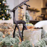 Voeg een stijlvol accent toe aan je winterdecoratie met dit verfijnde metalen rendier. Het slanke ontwerp en de donkere afwerking brengen een vleugje elegantie en rust in je interieur. Ideaal op een dressoir, vensterbank of als onderdeel van een feestelijke tafeldecoratie.