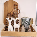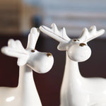 Deze stijlvolle rendieren vormen samen een subtiel en elegant duo dat rust en klasse uitstraalt. Hun glanzend witte afwerking met verfijnde gouden accenten brengt een moderne, warme toets in je kerstdecoratie en past moeiteloos in elk interieur.