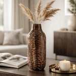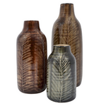 Een stijlvolle blikvanger met een natuurlijke ziel. Deze middelgrote vaas combineert ambachtelijke charme met een modern, organisch ontwerp. De zachte glans en ingegraveerde bladeren maken van elk exemplaar een subtiel kunstwerk op zich.