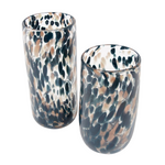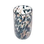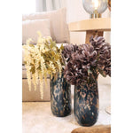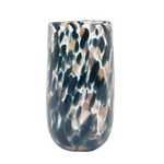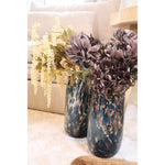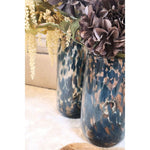 Breng diepte en karakter in je interieur met deze prachtige glazen vaas. Het gevlekte patroon in diepe blauw- en ambertinten zorgt voor een luxueus, betoverend effect dat prachtig het licht vangt. Of je nu kiest voor de kleinere of grotere variant, deze vaas is een stijlvolle blikvanger op tafel, kast of dressoir.