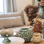 Laat je interieur stralen met dit charmante vaasje of kaarsenhouder uit de Green Oase collectie. De glanzende parelmoerfinish en het organische reliëf geven dit kleine decoratiestuk een natuurlijke elegantie die in elk hoekje tot zijn recht komt. Perfect voor een enkele bloem, een theelichtje of gewoon als sfeervol accent.
