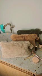 Geef je beautycollectie een zachte, stijlvolle upgrade met dit beige fluffy opbergtasje. Een warm en elegant accessoire dat je dagelijkse organisatie net dat tikkeltje mooier maakt.